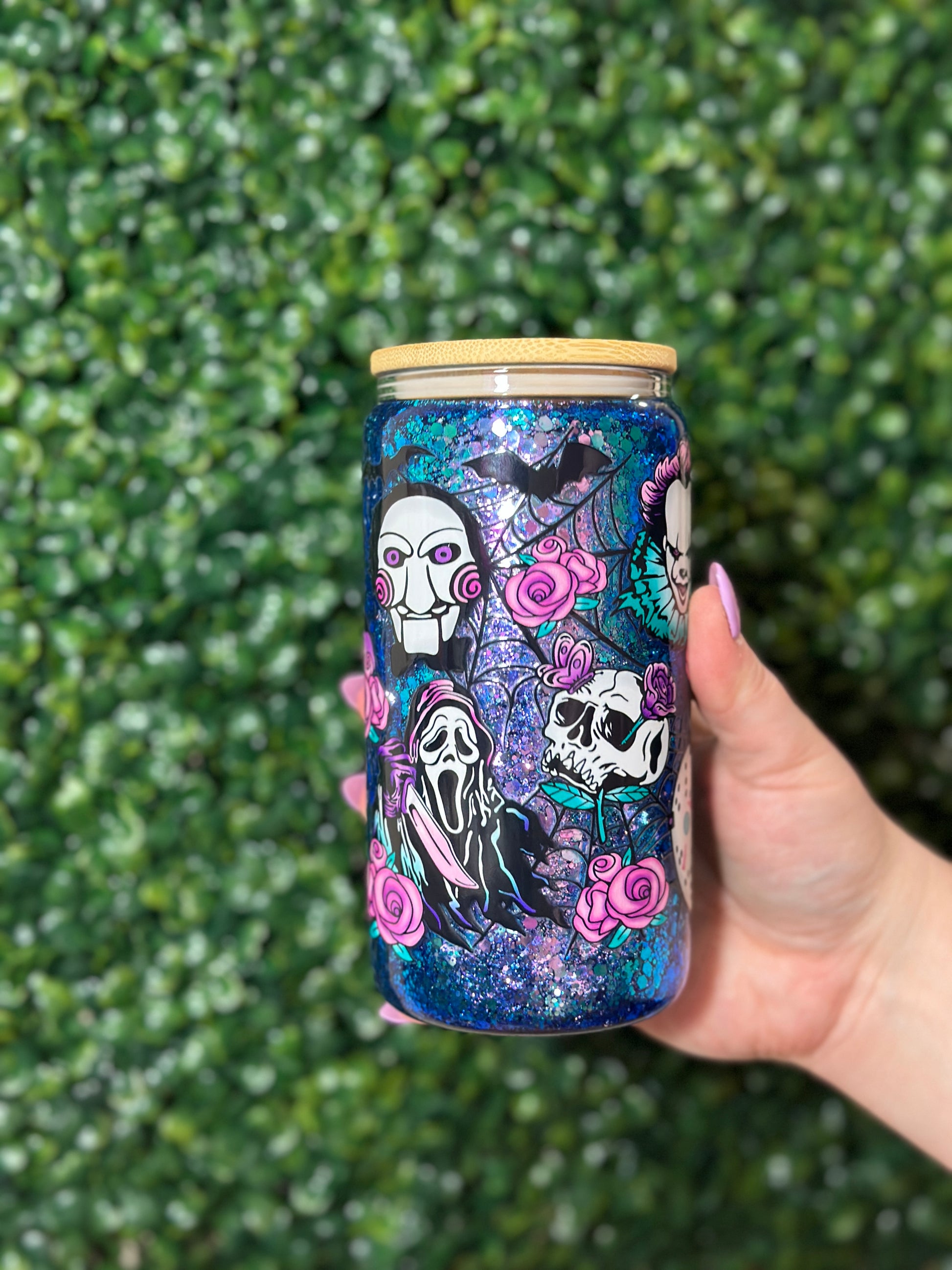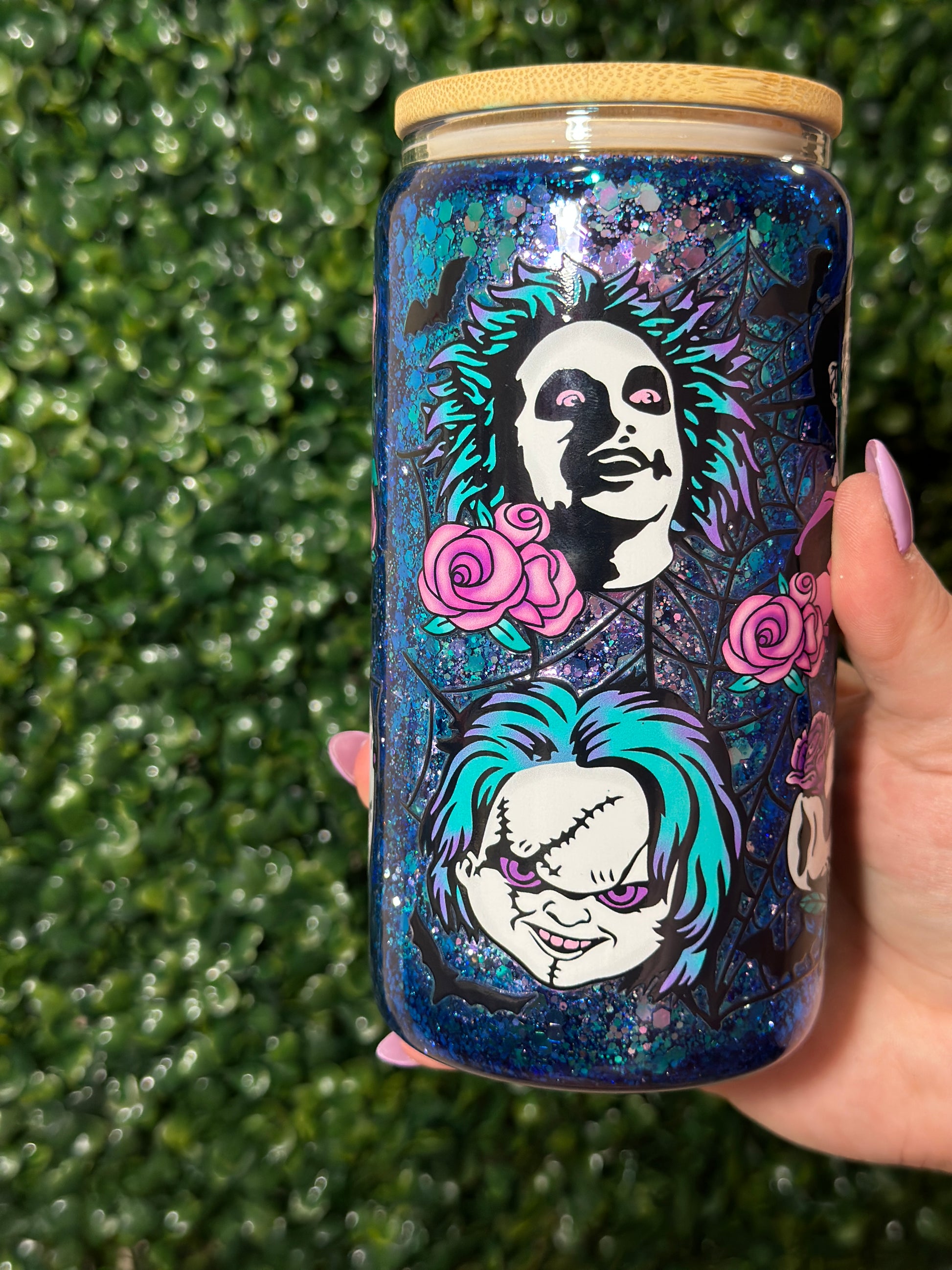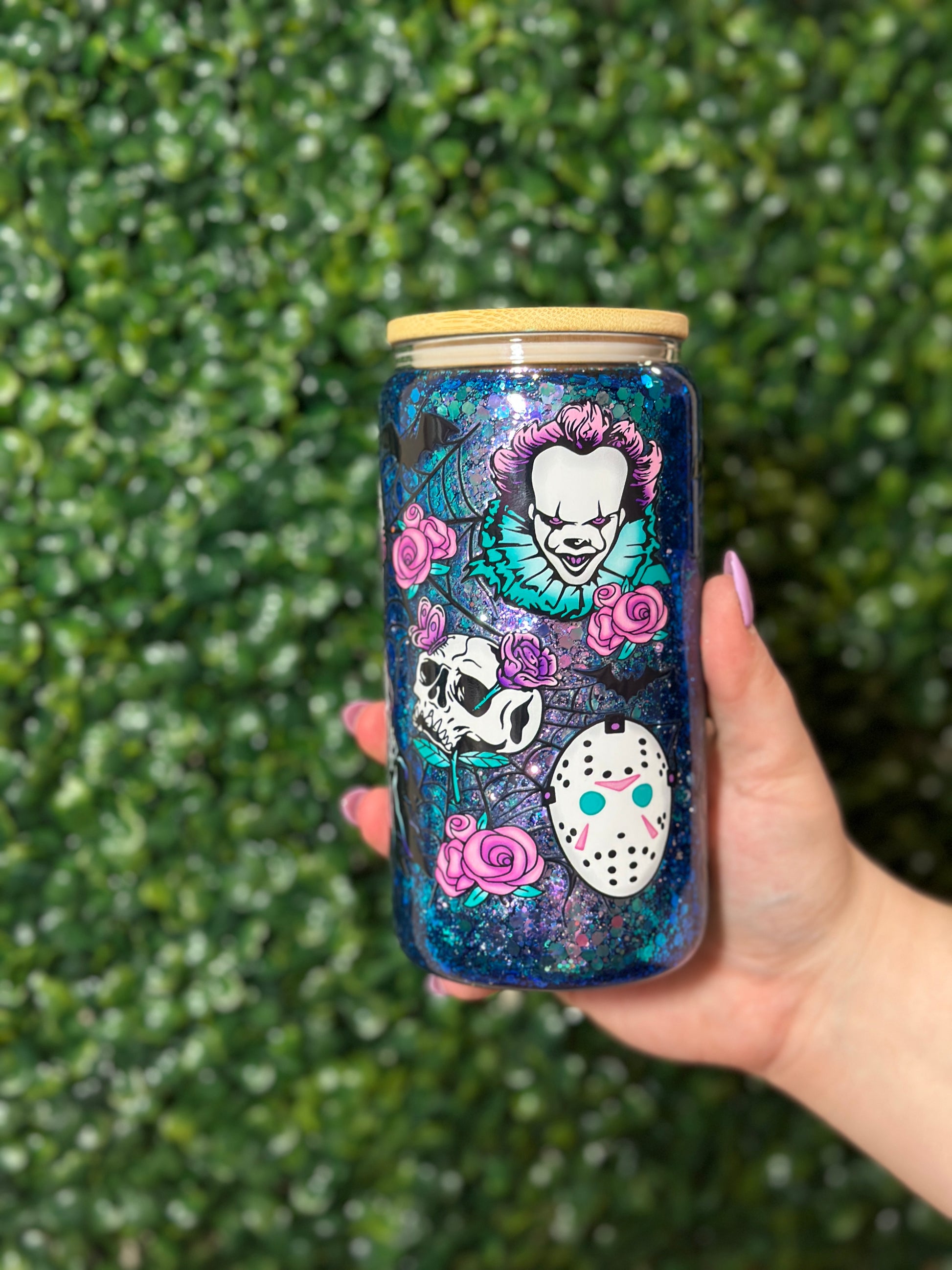 Flower Halloween Characters Glass Snowglobe